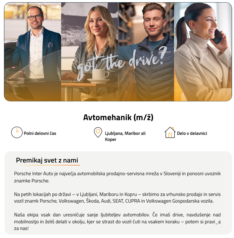 V PORSCHE INTER AUTO VABIMO V NAŠE VRSTE NOVEGA SODELAVCA. RAZPISUJEMO DELOVNO MESTO: